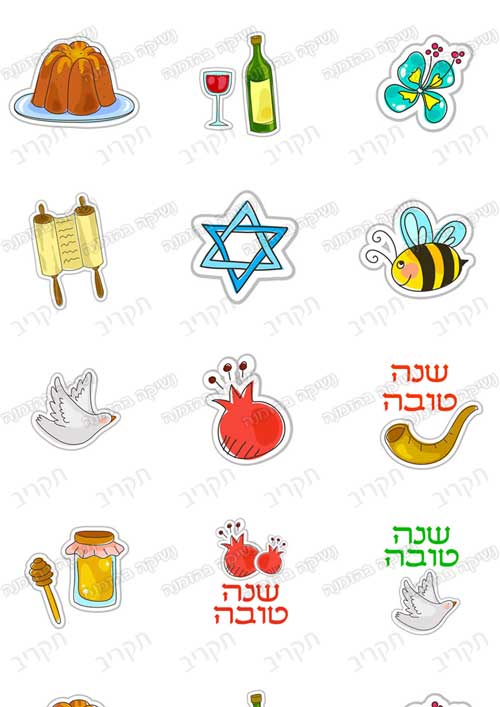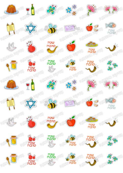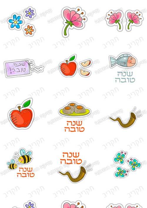 פרחים, דבורים, רימונים, ועוד, ערבוביה שמחה של כל סמלי החג.