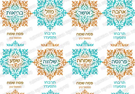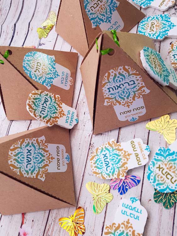 דף מדבקות בצורת חמסות. 16 מדבקות בדף.