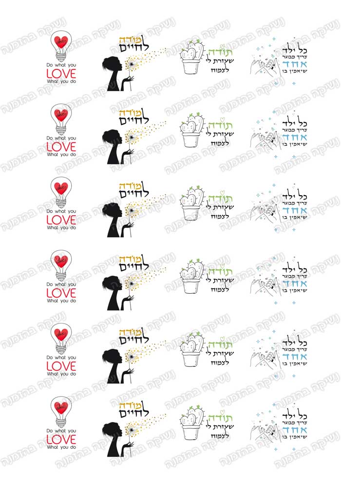 דף מדבקות, מושלם למגוון מתנות ודרך מקורית להגיד תודה. קוטר כל מדבקה 4 ס”מ. 24 מדבקות בדף.